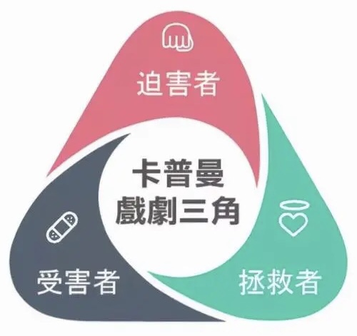 戲劇三角形:會有一個邀請者(貌似都是以受害者發起)作為餌,搭配一個鈎,進入戲劇三角形:迫害者-拯救者-受害者。在情境里這3個角色是流動的,主要看「邀請人」想干嘛。