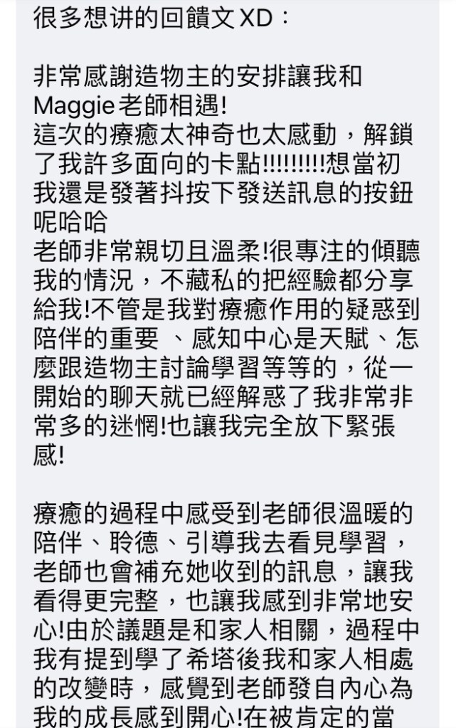 透過希塔,協助你找到自己專屬的接訊方式(直覺力),不論是在工作及生活上,學會以正面積極的態度對待。